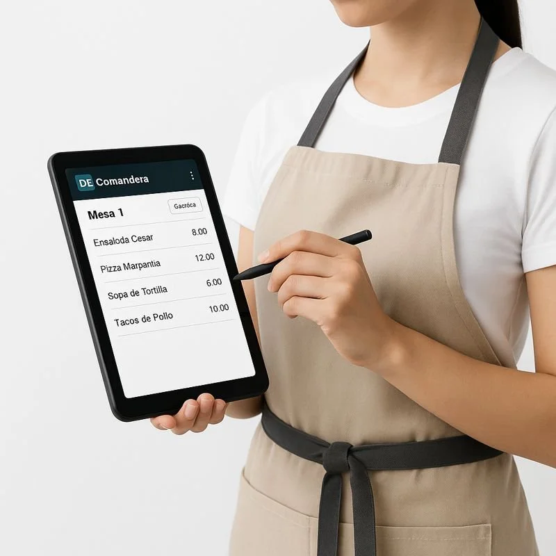 Aplicación móvil diseñada para meseros o personal de atención que permite tomar pedidos de forma rápida y enviarlos directamente a cocina. Optimiza el servicio y reduce errores en el restaurante.